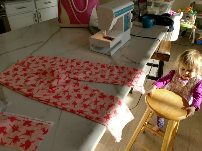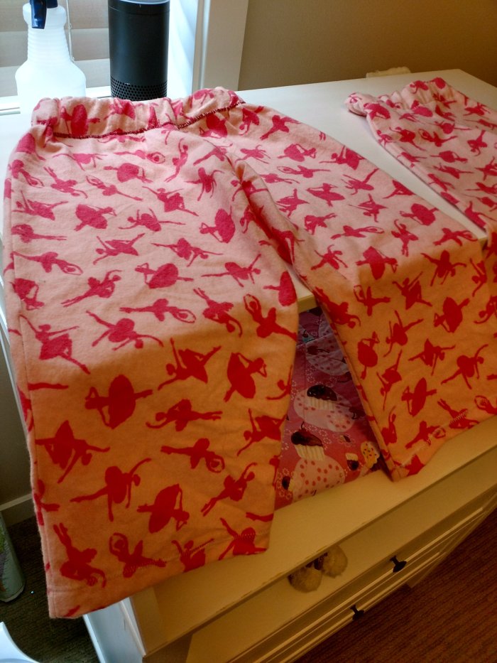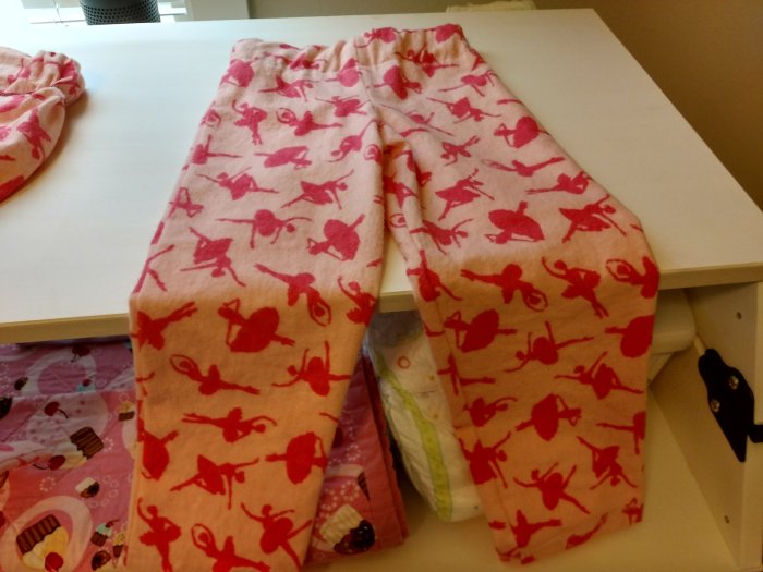 Here’s the deal: I’ve been holding onto my tattered pajamas for several years now. I thought, why not make a little pajama top for my toddler?