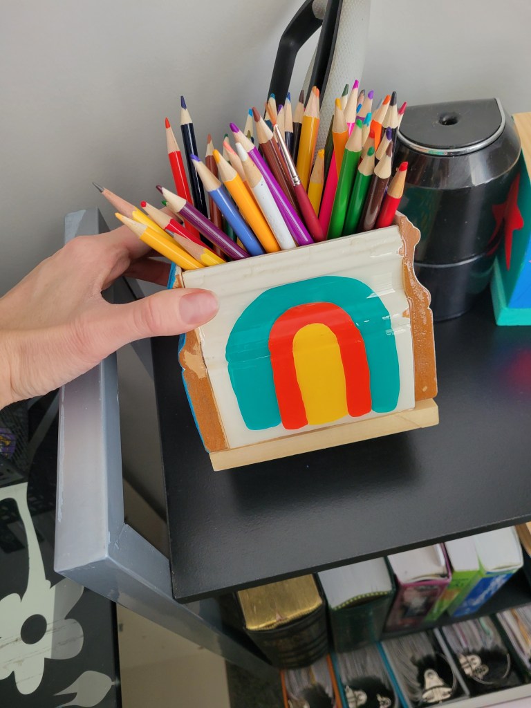 Many baseboards needed to be torn out in the process. I thought, why not start making containers and pencil boxes from the old damaged baseboards instead of tossing them?